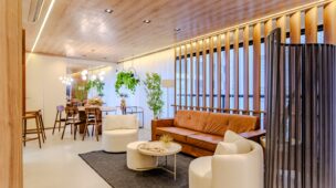 Além disso, introduzimos um elegante painel ripado, harmonizando-o com os tons amadeirados presentes em outros banheiros, criando assim uma sensação de spa. Para aprimorar ainda mais o ambiente, adicionamos folhagens ao painel ripado, trazendo uma pitada de natureza e frescor ao espaço. Essas intervenções não apenas resolveram a peculiaridade da disposição do vaso sanitário, mas também contribuíram para uma atmosfera luxuosa e aconchegante no banheiro, demonstrando como o Home Staging pode transformar até mesmo os desafios mais singulares em oportunidades de design criativo.
